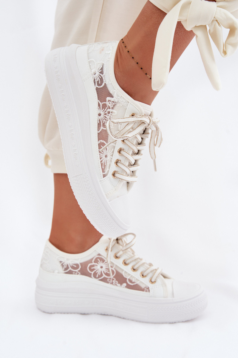 Lee Cooper LCIN-26-44-4480 weiße Freizeitschuhe mit Schnürsenkeln und Plateausohle