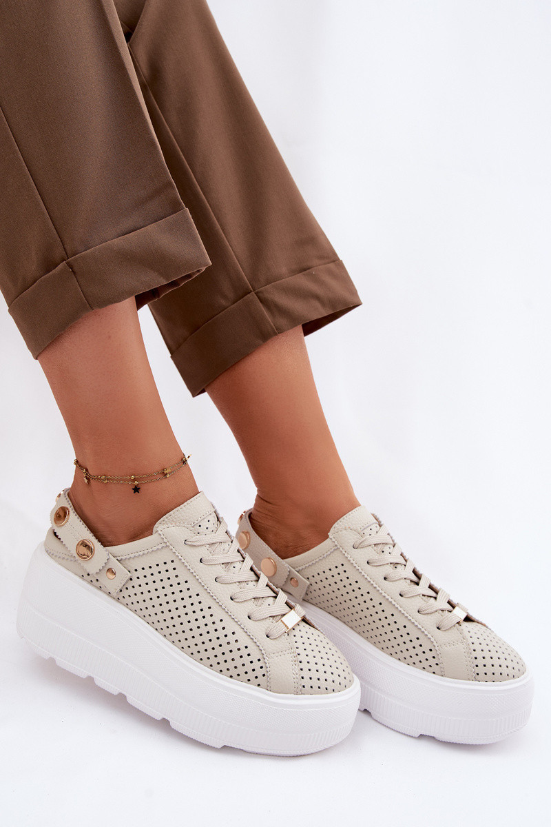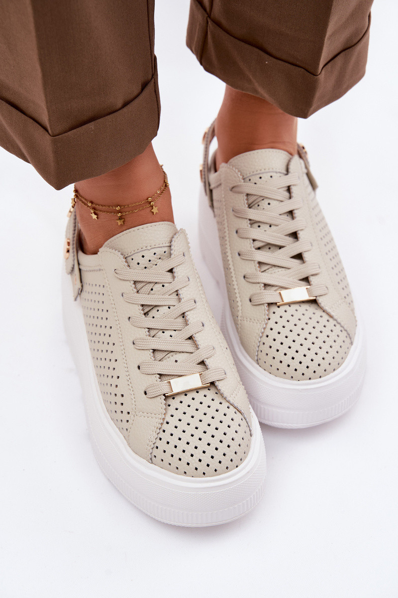 Leder-Sport-Schuhe mit durchbrochenen Elementen für Frauen mit Plattform und Riemchen D&A LR61-7088 sandfarben