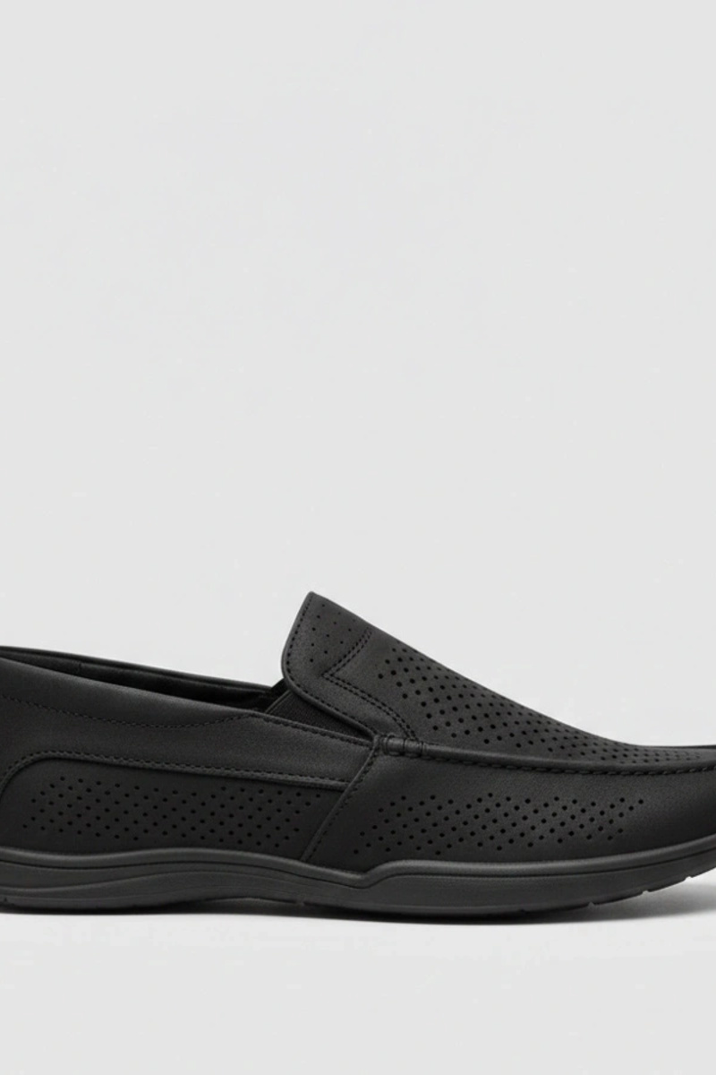 Schwarze perforierte Herren Mokassins...