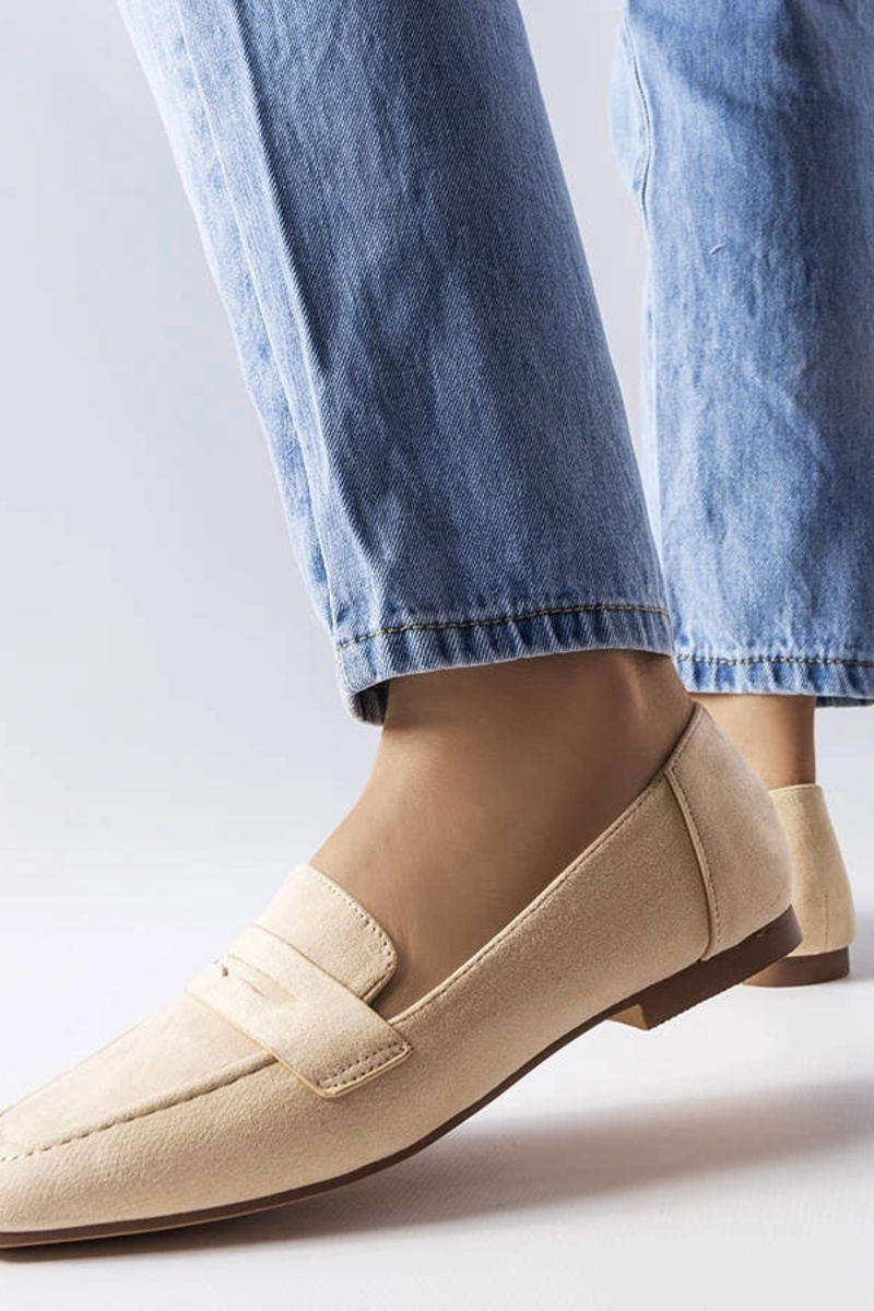 Sandfarbene Kunstvelours-Balletschuhe Meileur