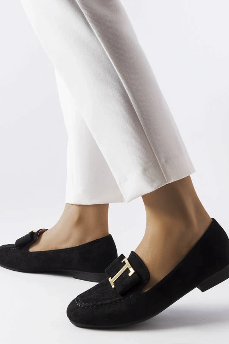 Schwarze „Adélaïde" Kunstvelours-Balletschuhe