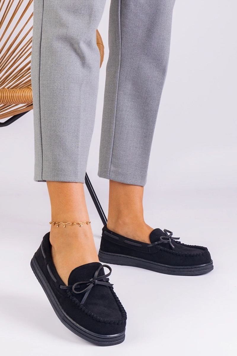 Schwarze Damen Kunstwildleder-Schuhe mit Schleife Sarina