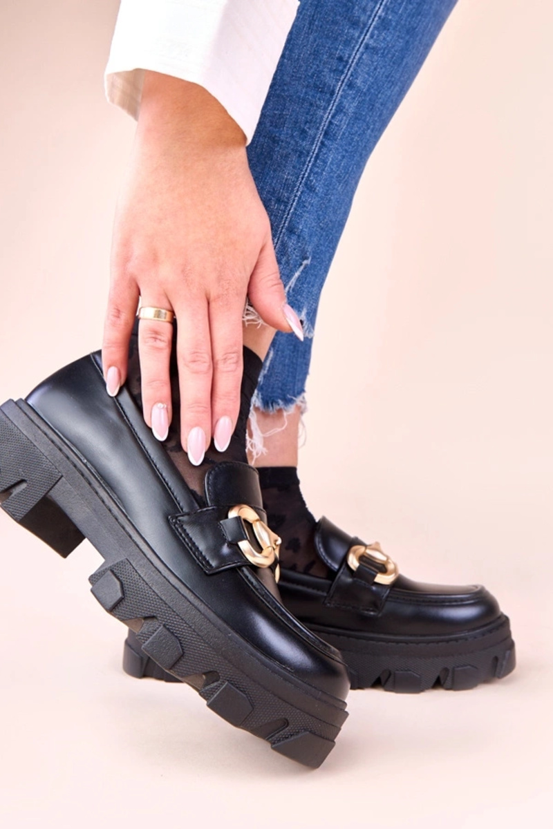 Schwarze Mokassins mit goldener Dekoration Ruben