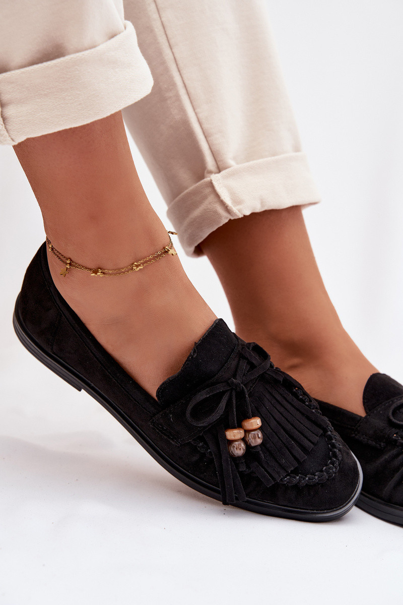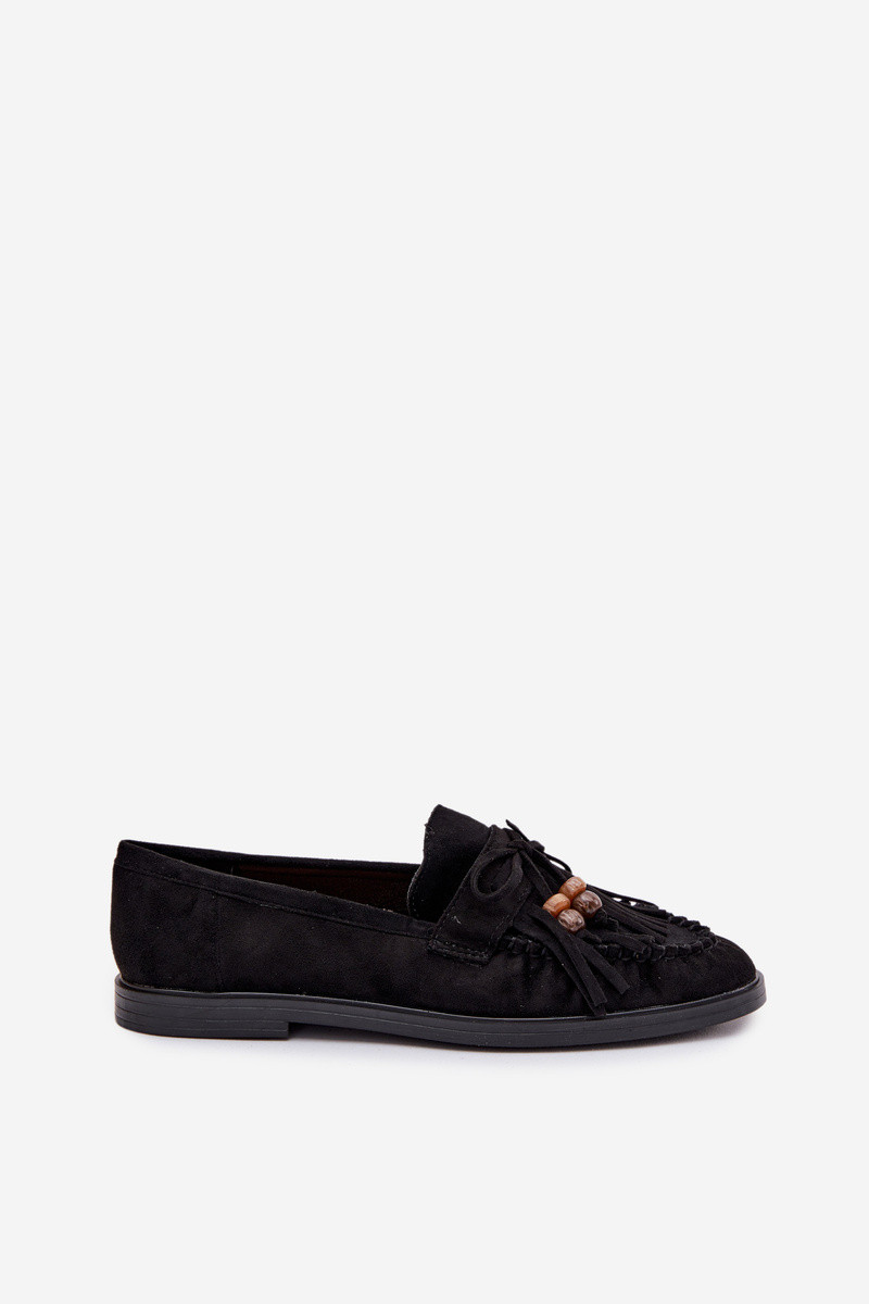 Mokassins für Damen mit Fransen I Korallenfarbeikami schZuarze Farbe Teressa