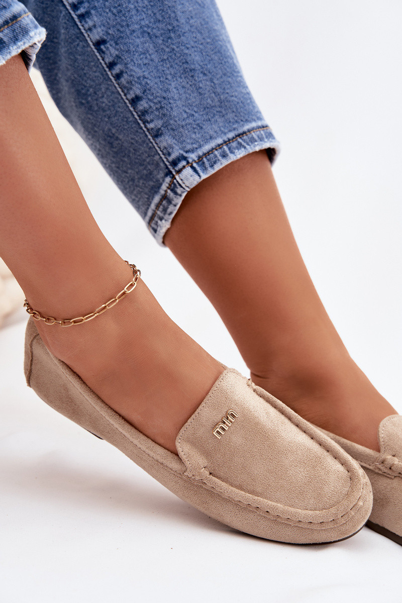 Damenmokassins mit goldfarbenen Details sandfarben Sarivelle