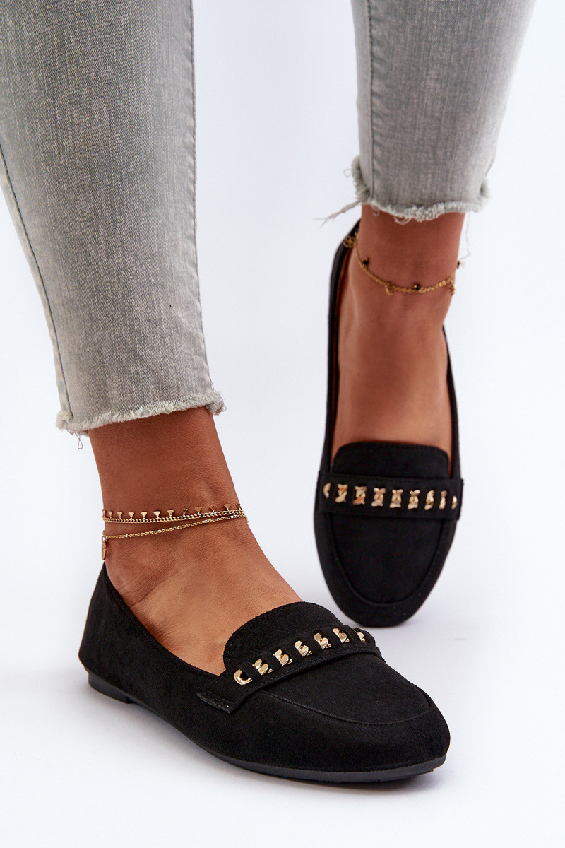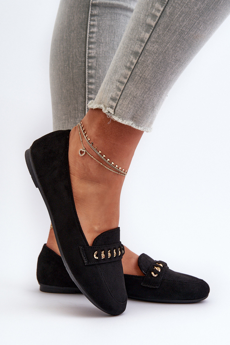 Glänzende Mokassins Feminin mit Ketten schZuarze Farbe Aredilla