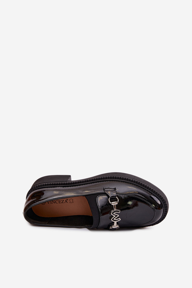 Haut Lackierte Mokassins Feminin Mit Dekorationen Detalem Vinceza 39985 schZuarze Farbe