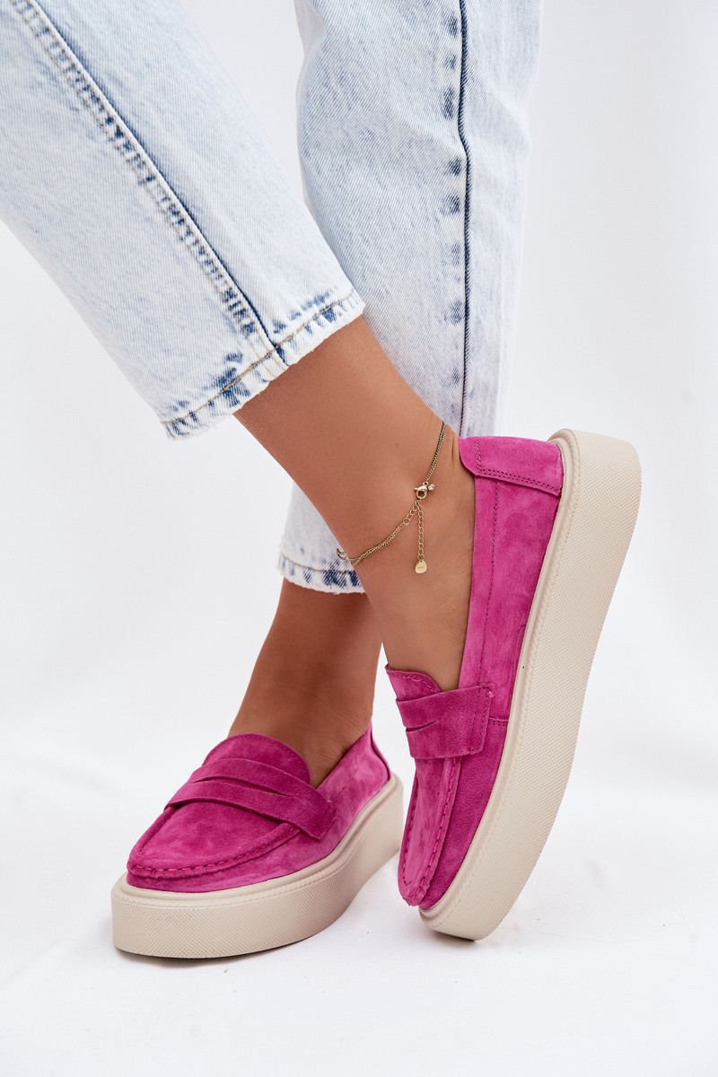 Rosa Kunstveloursleder Mokassins auf Plattform Vinceza 79594