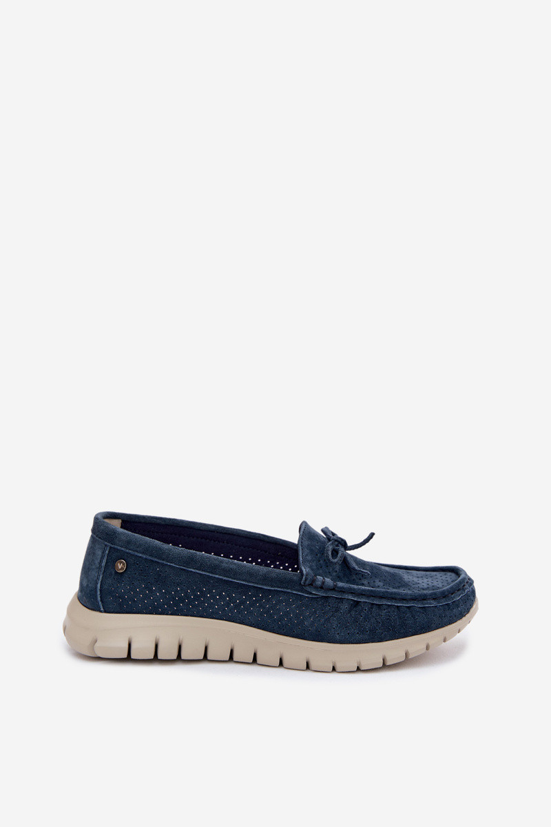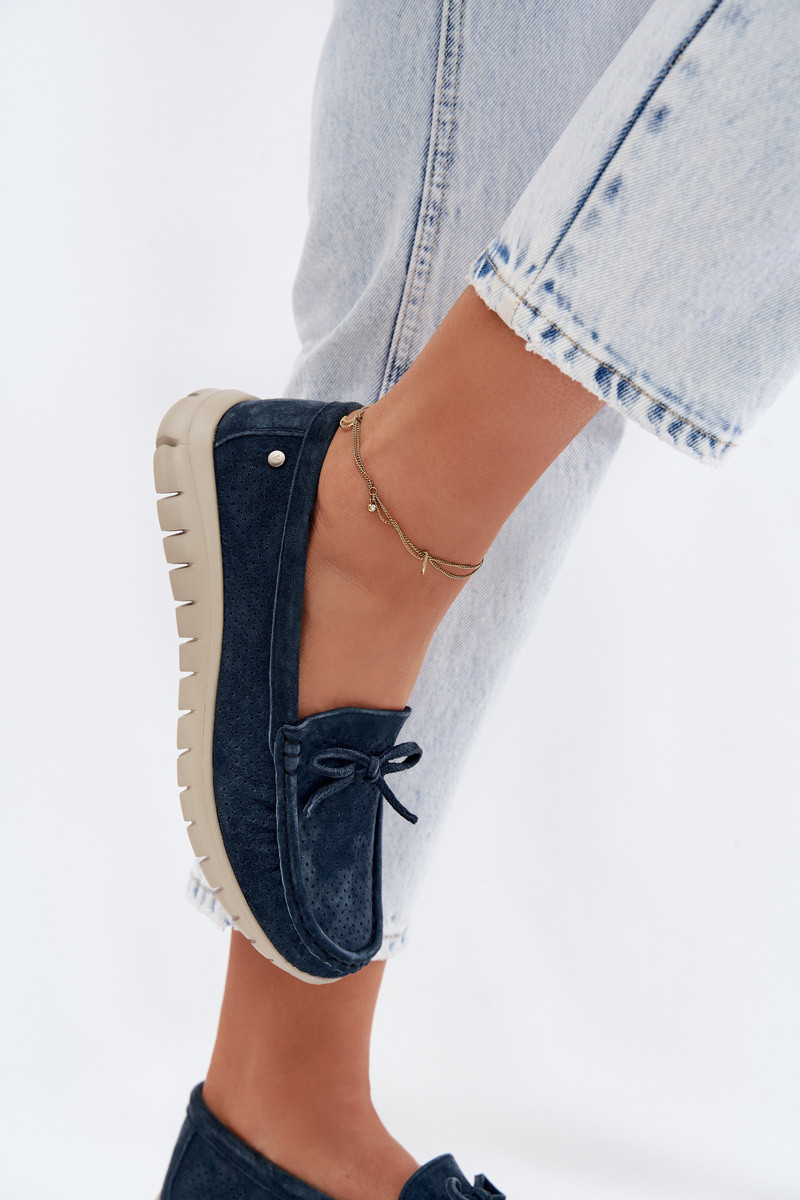 Dunkelblaue Kunstveloursleder Damenmokassins mit Schleifen Vinceza 95401