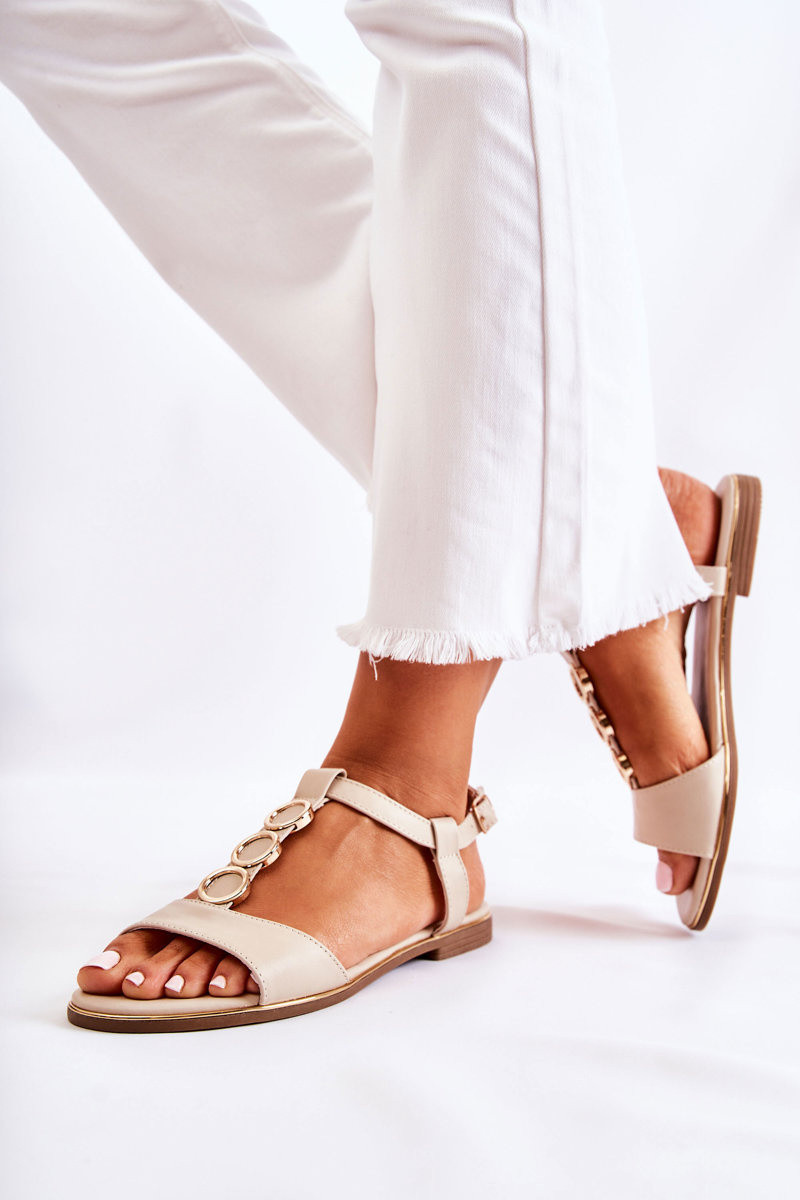 Damen Sandalen im klassischen Stil mit dekorierten Absätzen in sandfarben Terina