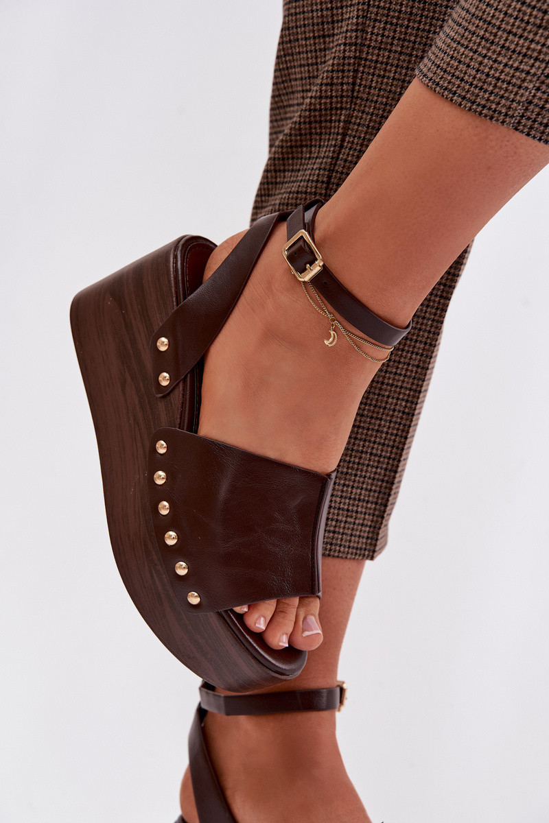 Damen-Sandalen auf einer Plattform mit goldenen Nieten in Schokoladenfarbe Galorina