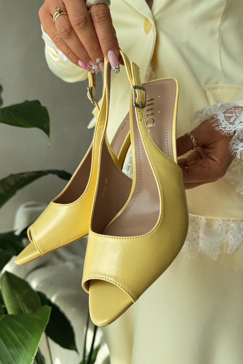 Damensandalen mit dünnen Absätzen gelbe Farbe Sevina