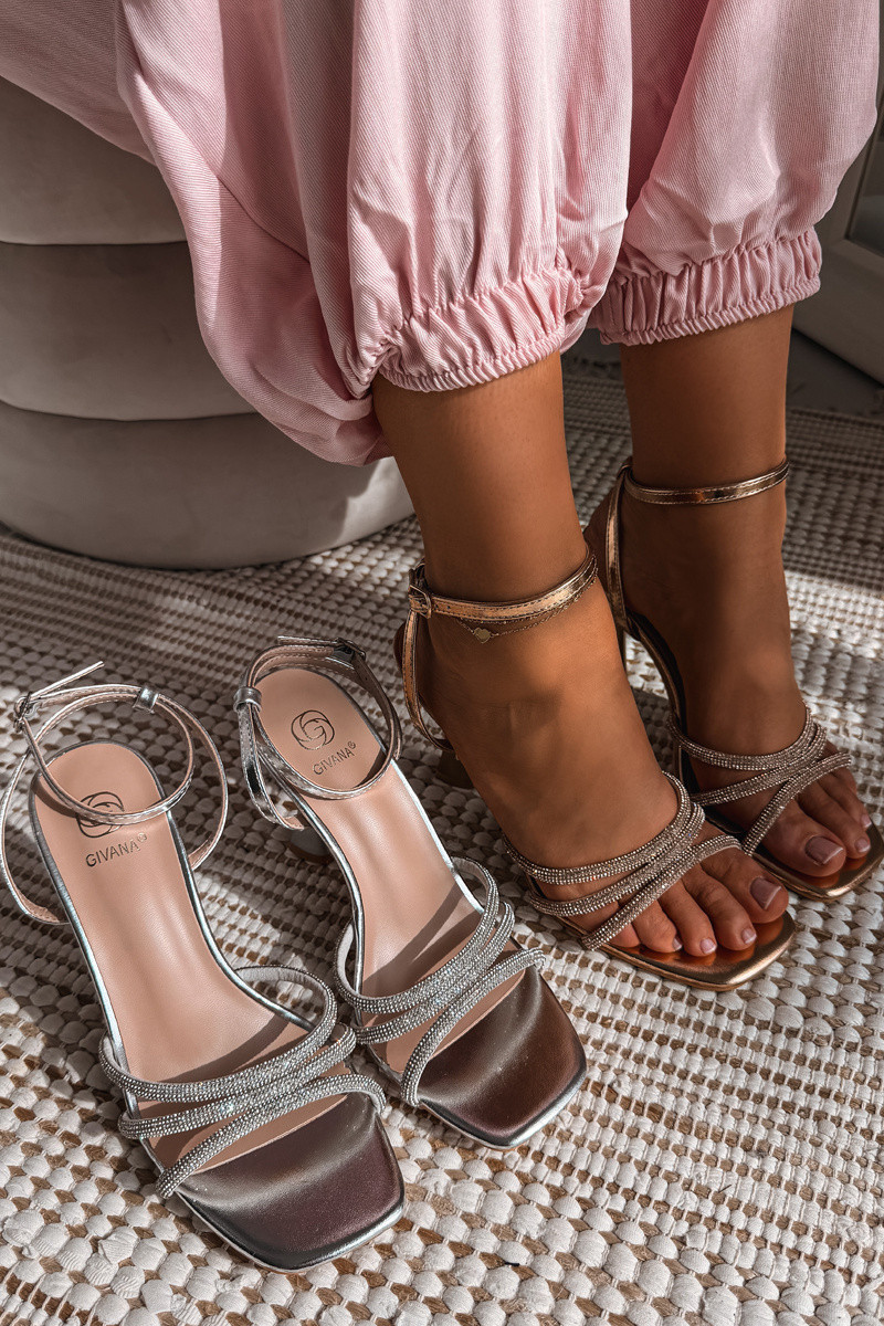 Damen Sandalen mit Absätzen, verziert mit Riemen in Champagner Gedira