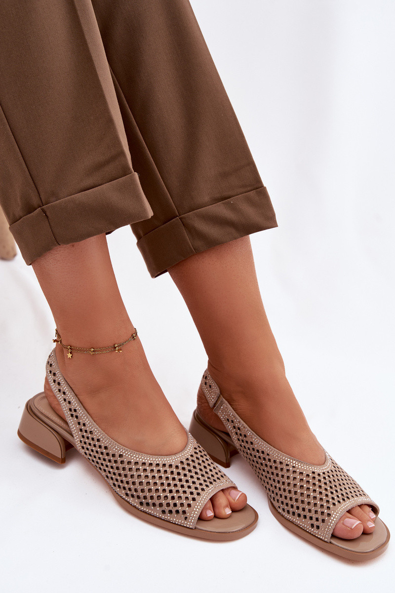 Dekoriert Durchbrochene Sandalen Feminin aus INildleder Klocke D&A CR61-3131 Beige