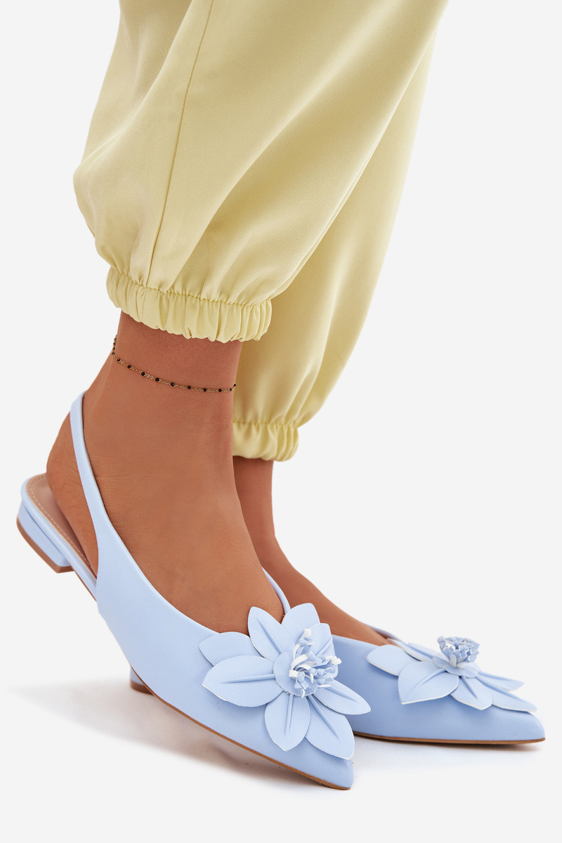 Damensandalen mit breiten AbsätzenDekoracyjnym Eine Blume blaue Farbe Telivette