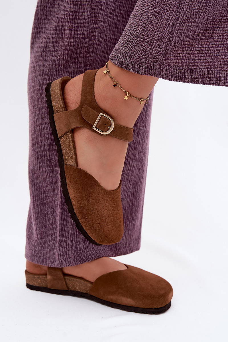 Leder-Suede Sandalen mit geschlossenen Zehen Tai turiciejka H7365-02 braun