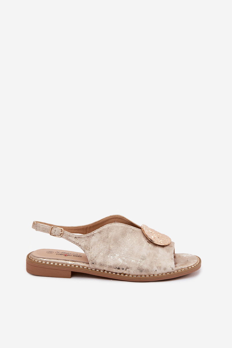 Damen-Sandalen mit breiten Absätzen und Ornamenten S.Barski KV61-6035 goldfarben