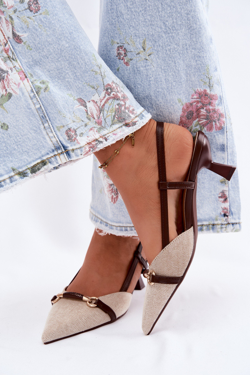 Damensandalen mit Absätzen Ze Szpiczastymi Noskami braun-Beige Felessa