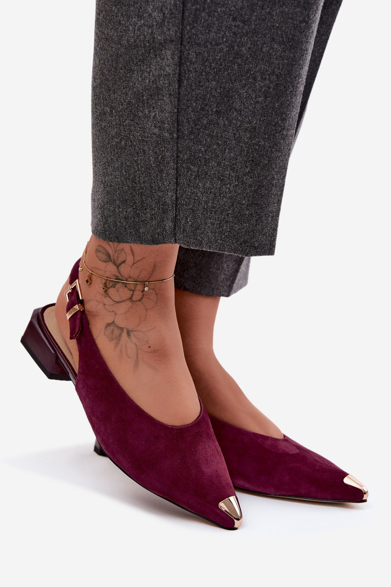 Damen Wildleder-Sandalen auf niedrigem Absatz D&A CR61-3050 burgunder