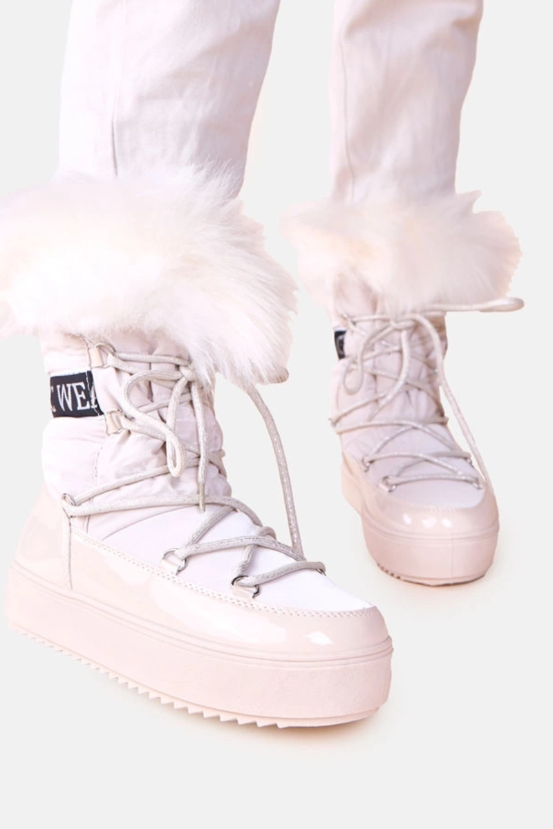Sandfarbene Schneestiefel mit Schnürsenkeln und Fell Alison