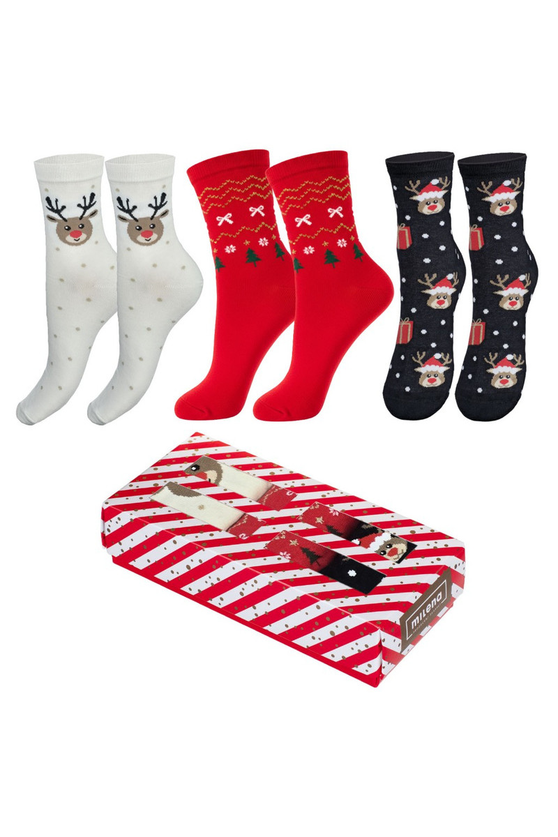 Weihnachtliches Damenstrumpfset in der Box, 3 Paar