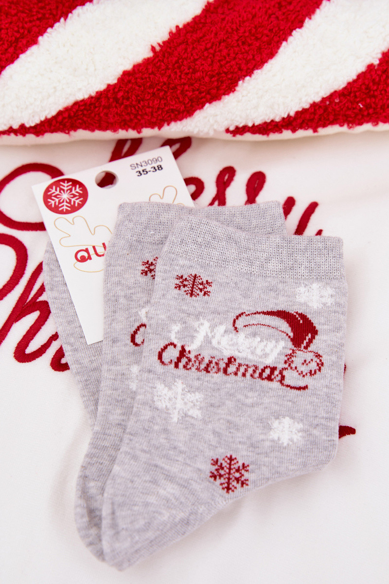 Damen Weihnachtsstrümpfe mit Schneeflocken und Aufschrift in Grau