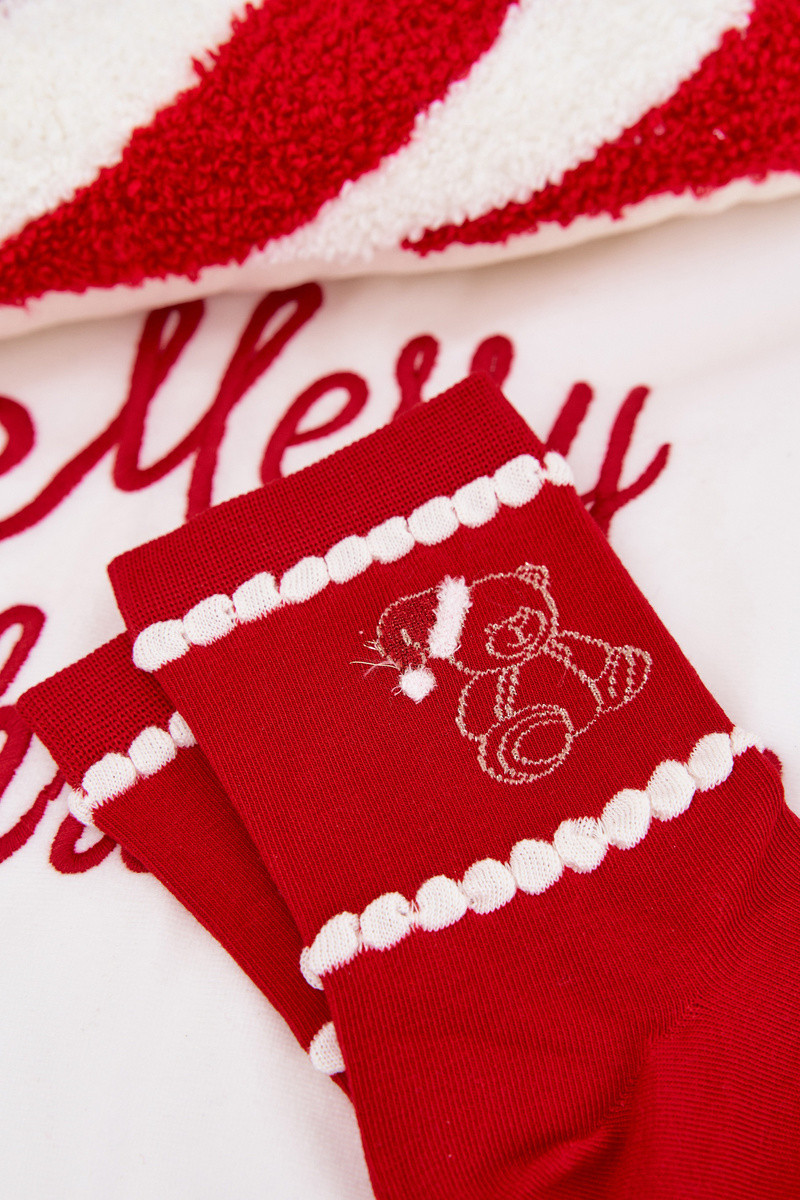 Damen Weihnachtsstrümpfe mit Bären und Weihnachtsmann in Rot