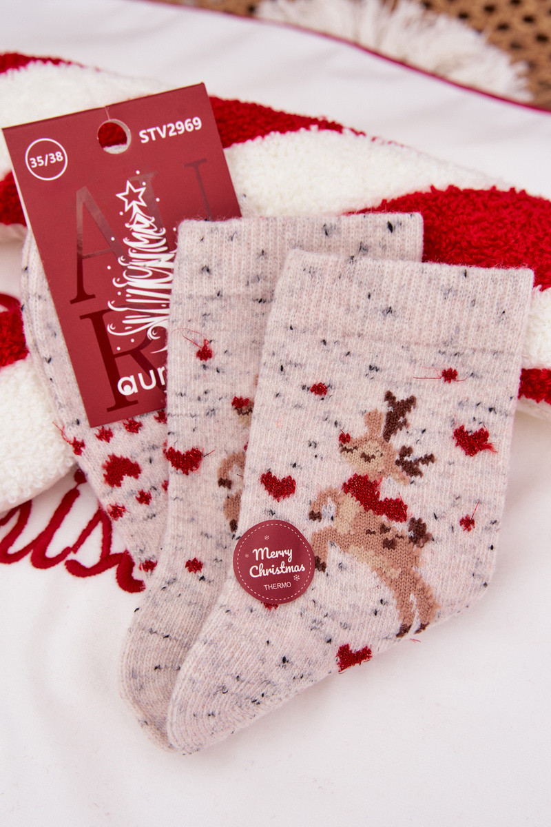 Damen Weihnachtsstrümpfe mit Rentieren und Herzen, aus Wolle, grau