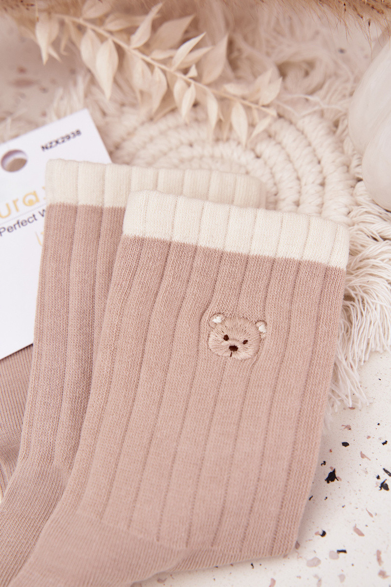 Damen Baumwollstrümpfe mit Touristenbären, sandfarben