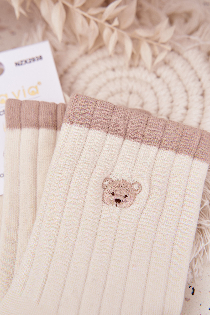 Damen Baumwollstrümpfe mit Touristenbären, elfenbeinfarben