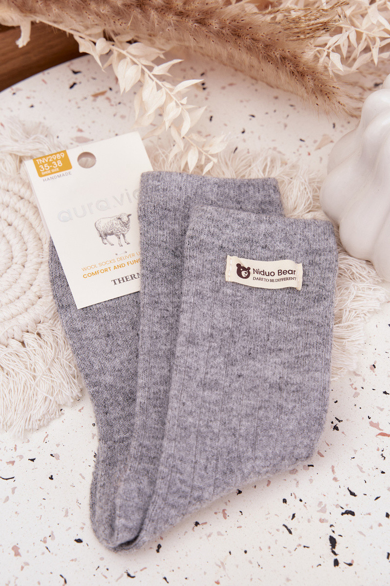 Warme Damen-Leinenstrümpfe mit Jacquard-Muster in grauer Farbe