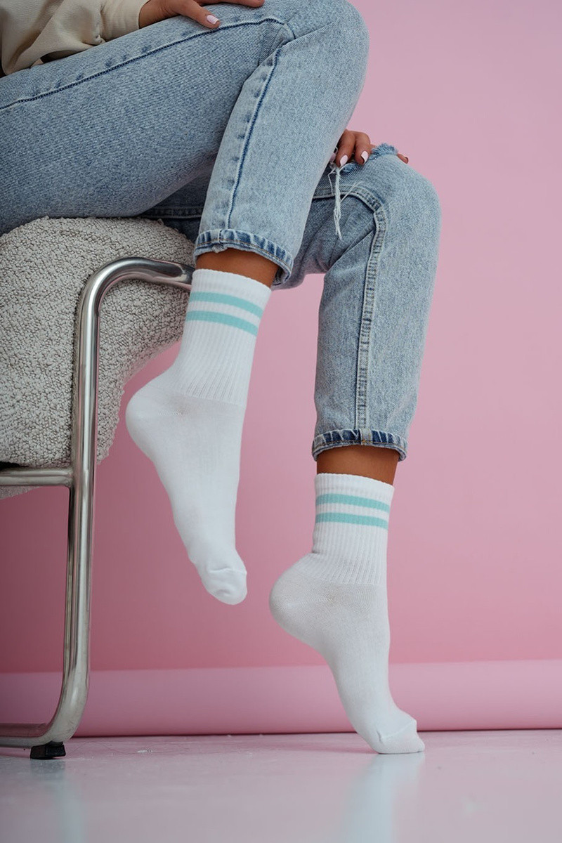 Socken Feminin DZua Cienkie Streifen INeiß-blaue Farbe