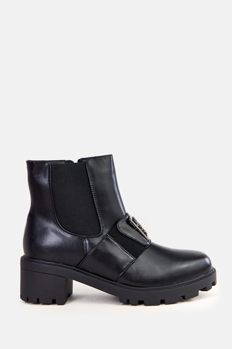 Czarne botki na obcasie z cyrkoniami Seul