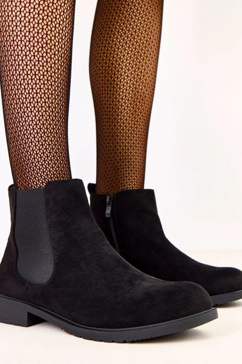 Schwarze flache Stiefeletten mit elastischem Einsatz Salomi