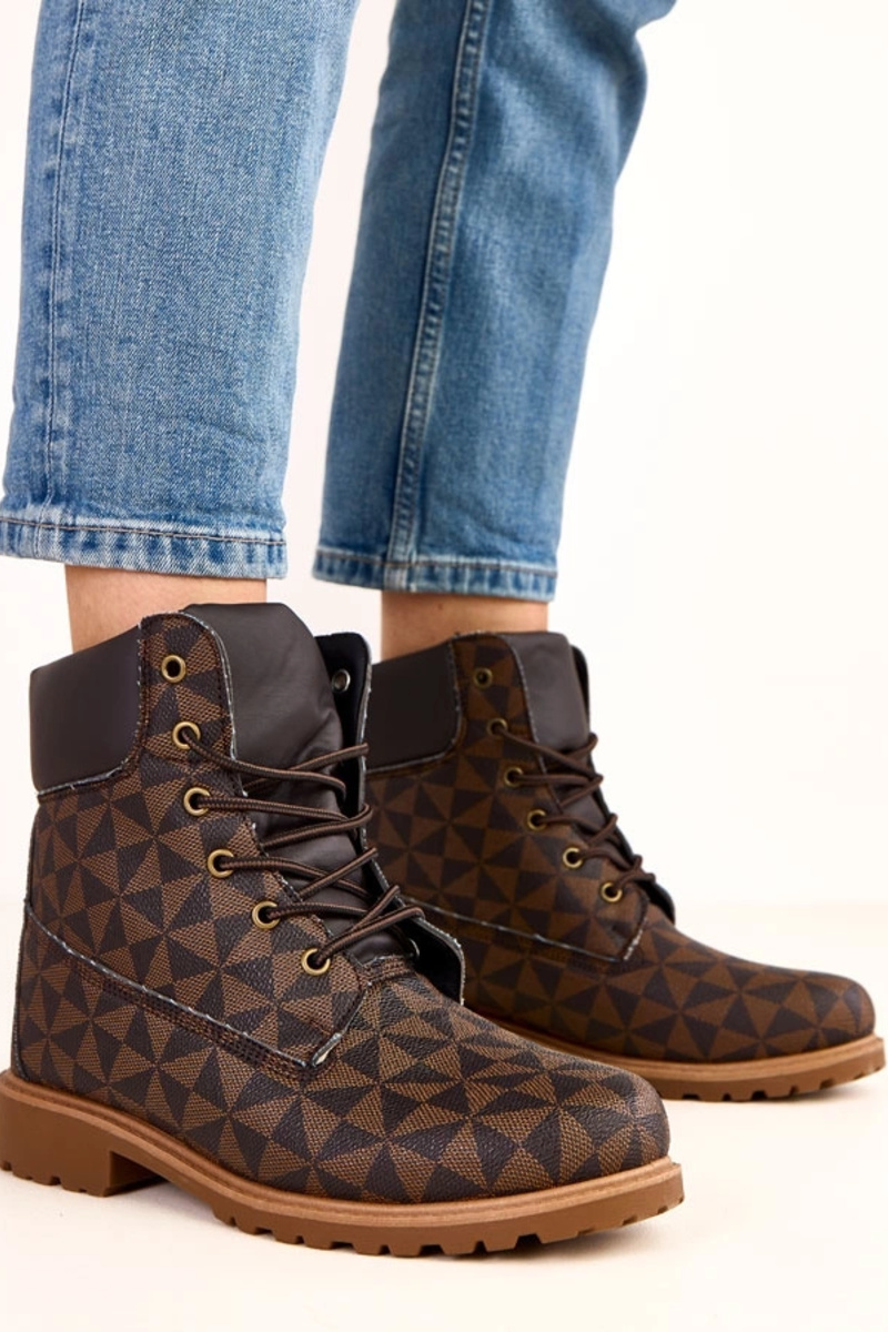 Schwarz-braune Arbeitsschuhe mit geometrischem Muster Alicia