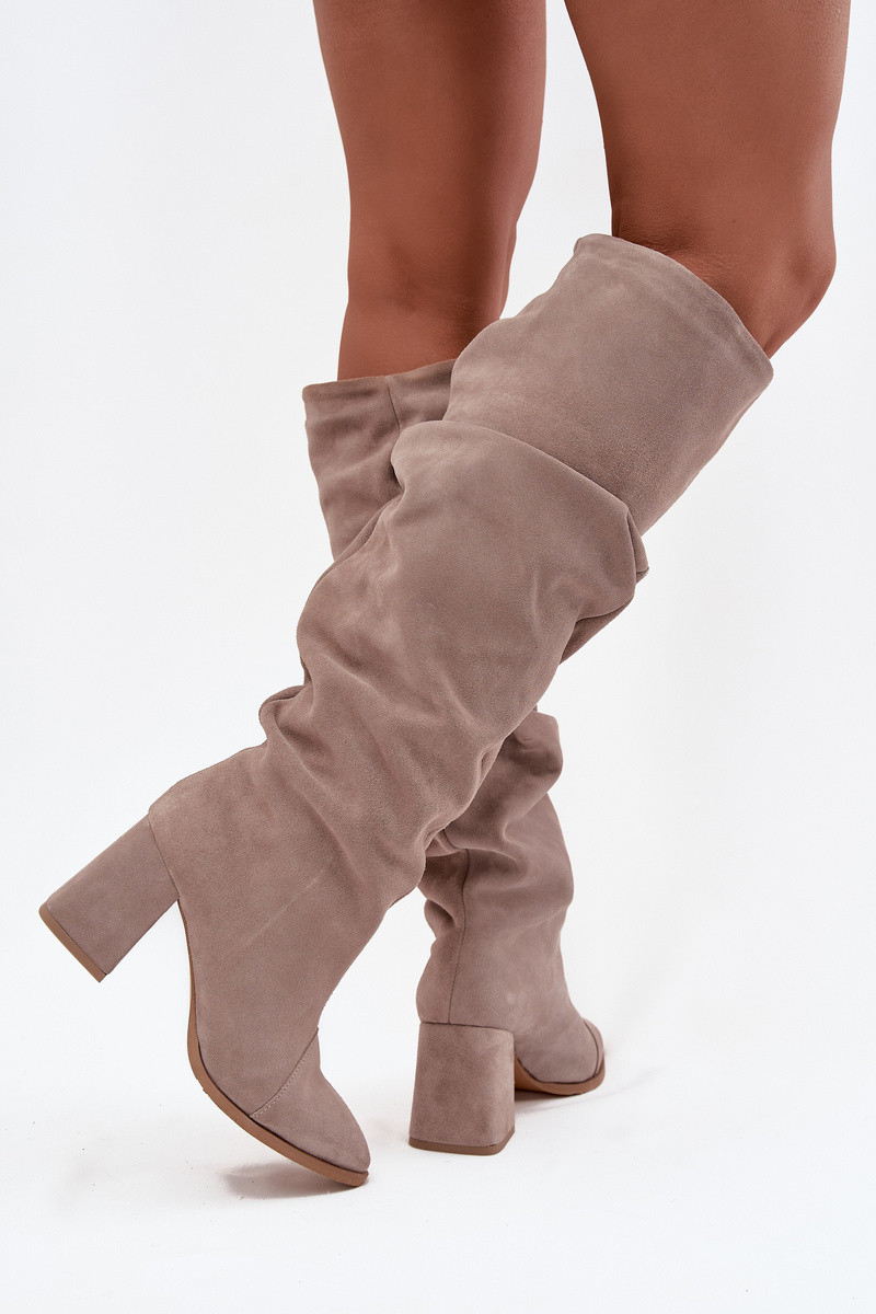 Susiraukšlėję lange Stiefel aus echtem Wildleder mit Absatz gefüttert Zazoo 4228 sandfarben