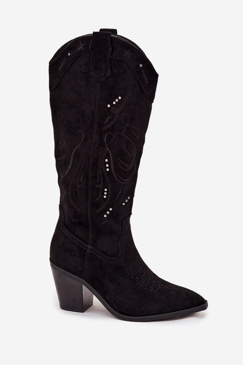 Stiefel CoZuboy-Stil Feminin mit Absätzenaus Öko-INildlederu schZuarze Farbe Coretta