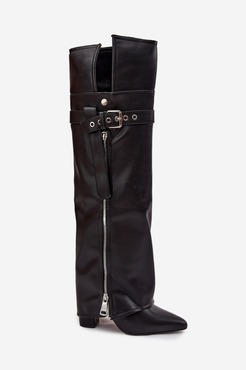 sich Zuarm laufen Damenstiefel oberhalb des Knies mit Absätzen mit Riemen mit Schnallen I Silberfarbem Zamkiem schZuarze Farbe R