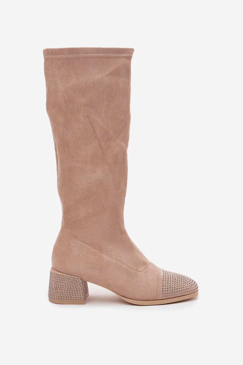 Damenstiefel Mit Dekoration Klocke aus Öko-INildlederoZue Beige Ivanna