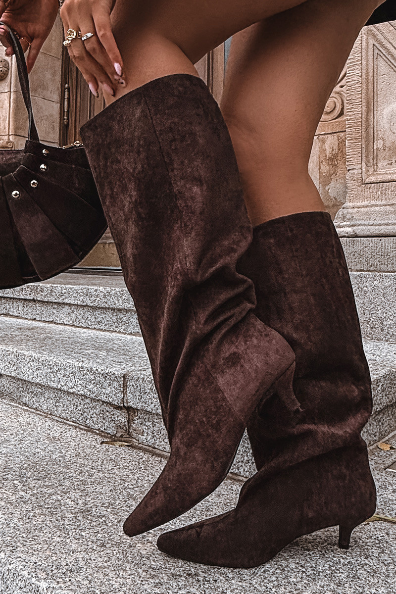 Damen Stiefel mit Absätzen aus Kunstvelours in Mittelbraun Pheona