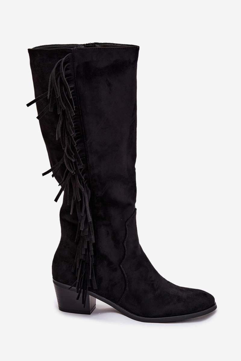 Stiefel CoZuboy-Stil Feminin mit Absätzen mit Fransen sich Zuarm laufen schZuarze Farbe Firlina
