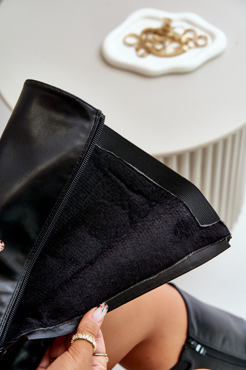 Damen gefütterte Stiefel mit breiten Absätzen und goldfarbenen Schnallen in Schwarz Arsisna