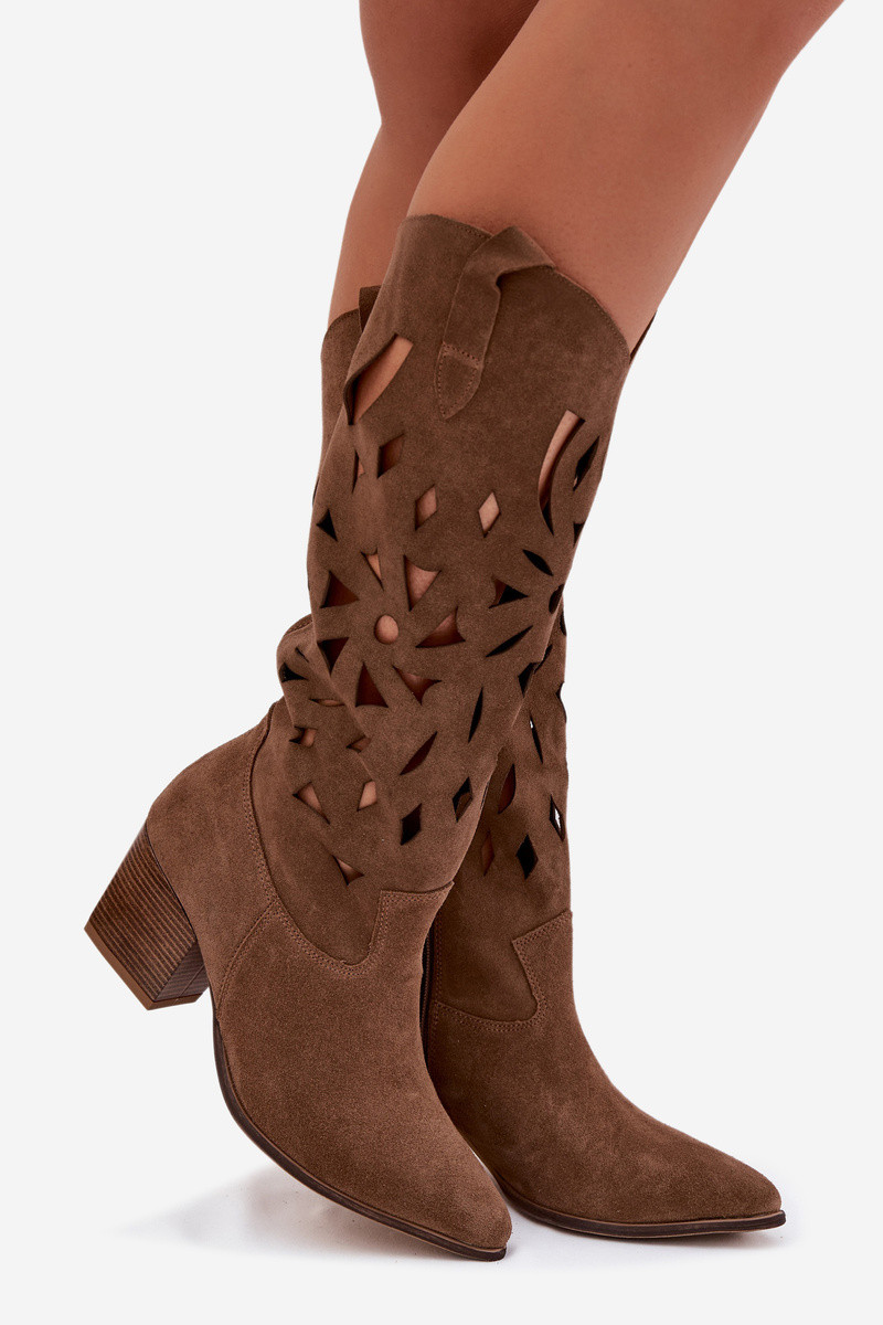 Stiefel mit Durchbrüchen aus natürlichem Wildleder Zazoo 3167 in sandiger Farbe