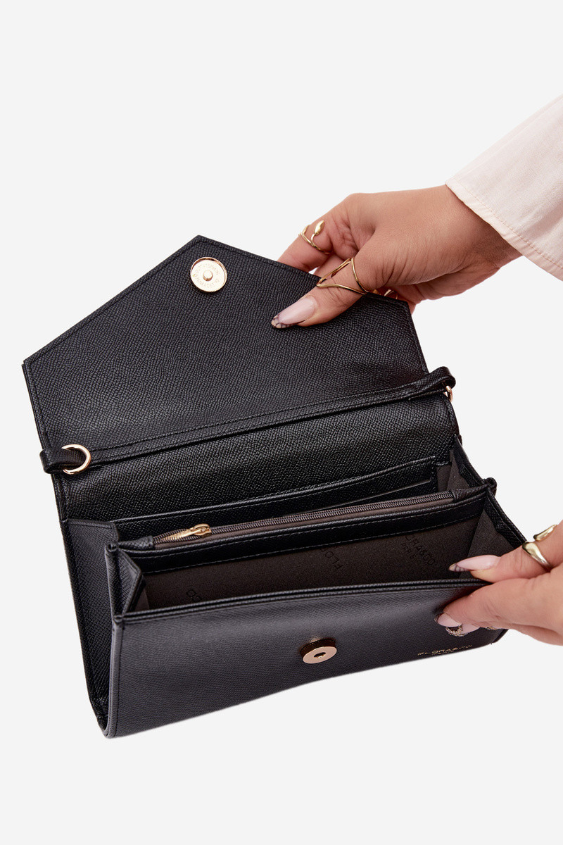 Tasche im Kuvertstil, zwei in eins, mit dekorativen Bändern in schwarz Pauline