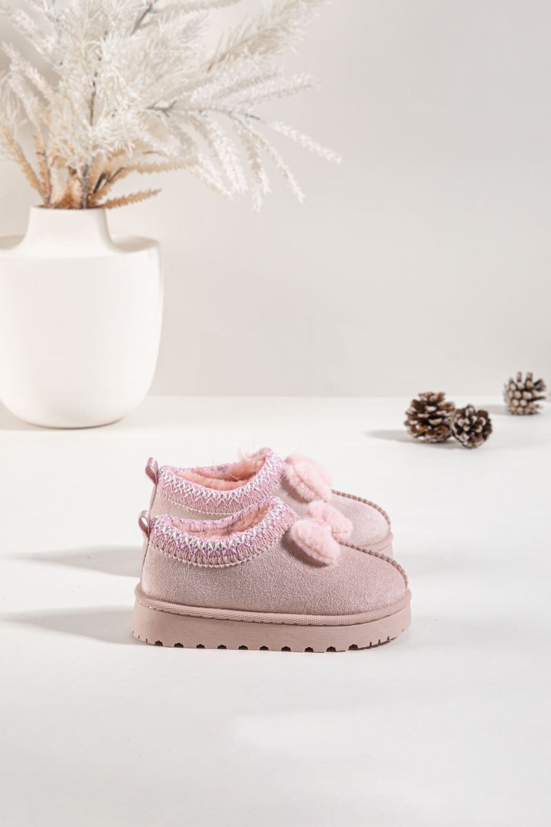 Kinder-Schneestiefel mit Stickerei und Schleife in rosa Daven