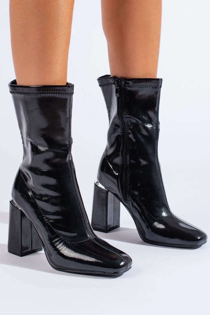 Hohe Damenschuhe mit Absatz aus lackiertem Kunstleder