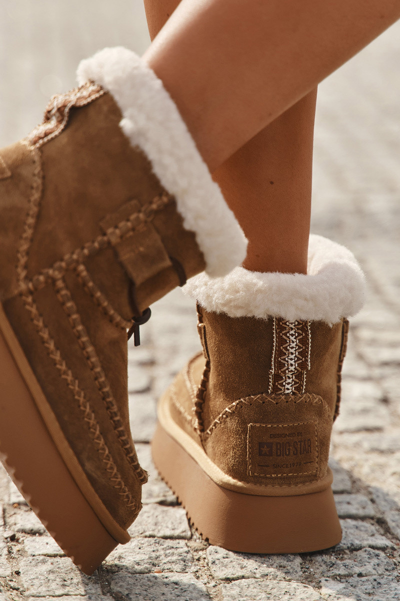Wildledersnowboots für Damen mit schönen Nähten, Big Star SS274373, braun