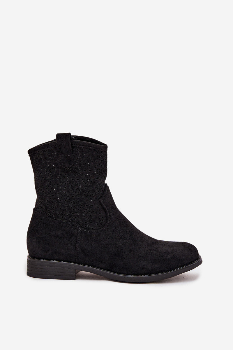 Damenstiefel mit breiten Absätzen mit durchbrochenen Elementen S.Barski HY52-530 schZuarze Farbe