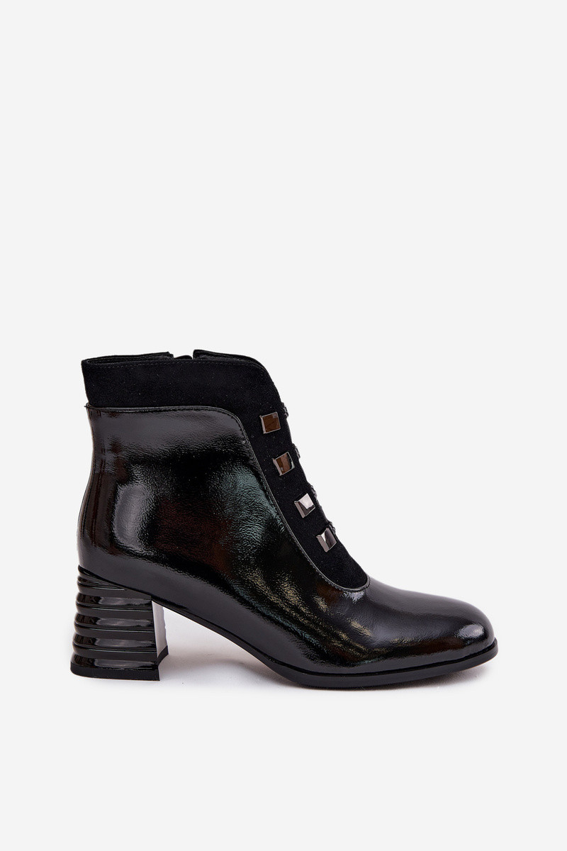 Kunstleder Damen Stiefeletten mit Lackeffekt D&A MR52-144 schwarz