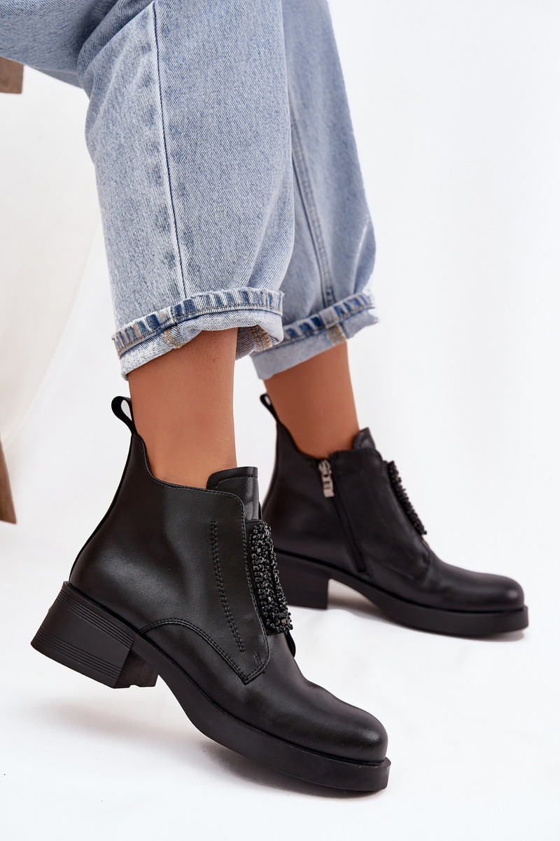 Leder Damen Stiefeletten mit Verzierungen D&A JC52-869 in schwarz